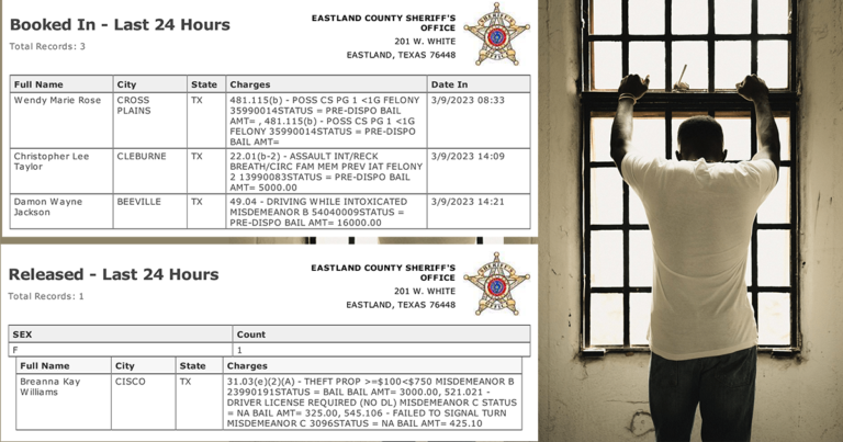 Eastland County Jail Activity Last 24 Hours. Reports March 8 & 9, 2023…