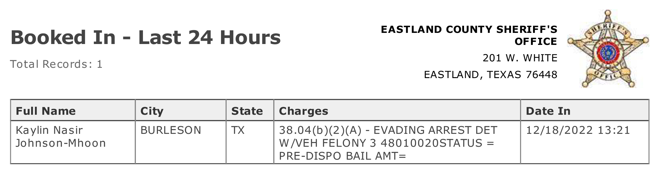 Eastland County Jail Activity Last 24 Hours December 19, 2022