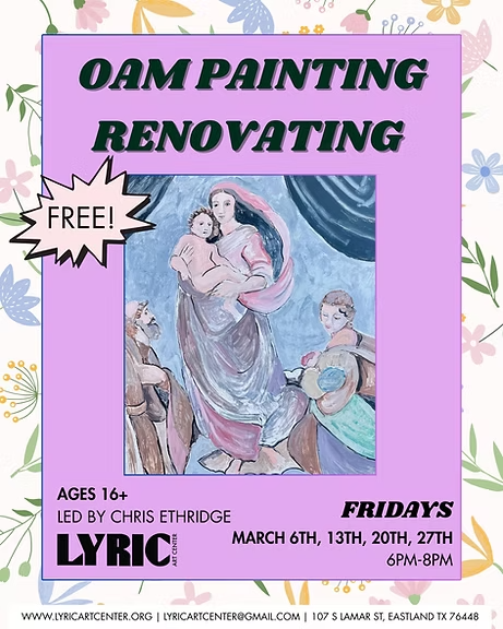 The Outdoor Art Museum originally recreated Raphael Sanzio’s Sistine Madonna in the early 2000s which has been mounted on the West exterior wall of the Lumberyard Event Center ever since. After several decades of weather and sun damage, many OAM pieces need renovating. Led by local artist Chris Ethridge, no prior painting experience is necessary to get involved. This will be fun, chill evenings of painting for our community.