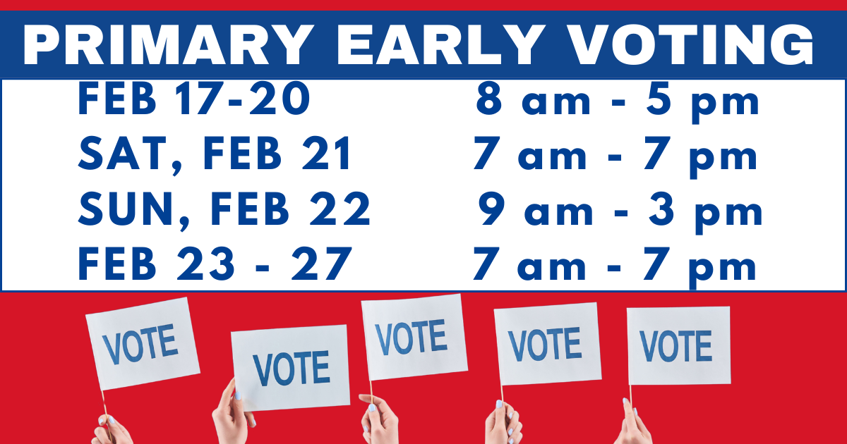 - Election Day is Tuesday, March 3, 2026. 7AM – 7PM